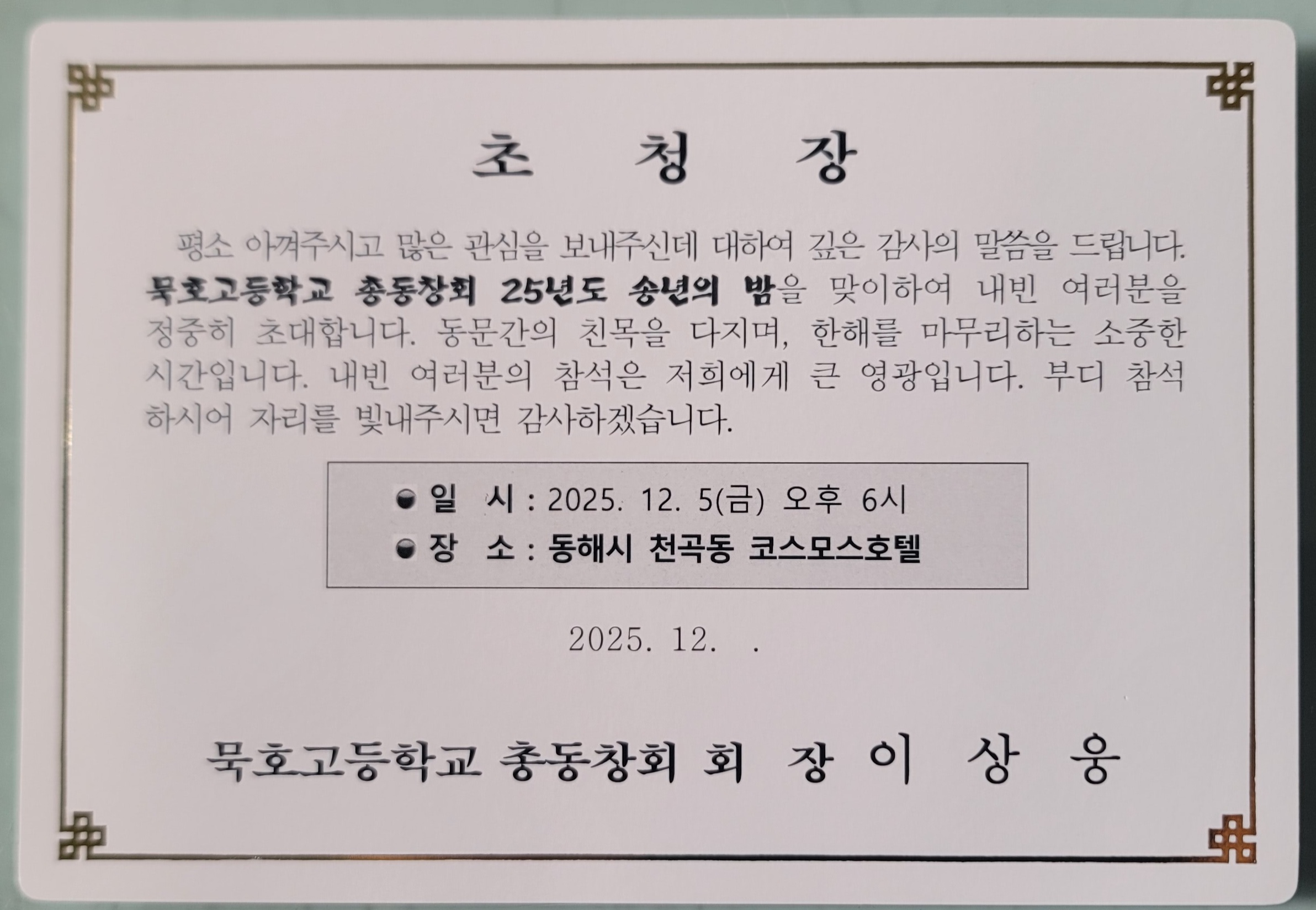 - 25³â Ãѵ¿Ã¢È¸ ¼Û³âÀÇ ¹ã ÀÏÀÚ : 12¿ù5ÀÏ(±Ý¿äÀÏ)½Ã°£ : ¿ÀÈÄ 6½ÃÀå¼Ò : ÄÚ½º¸ð½ºÈ£ÅÚ25³â ÇÑÇØ¸¦ µ¹¾Æº¸¸ç ¸¶¹«¸®ÇÏ´Â ¼Û..
